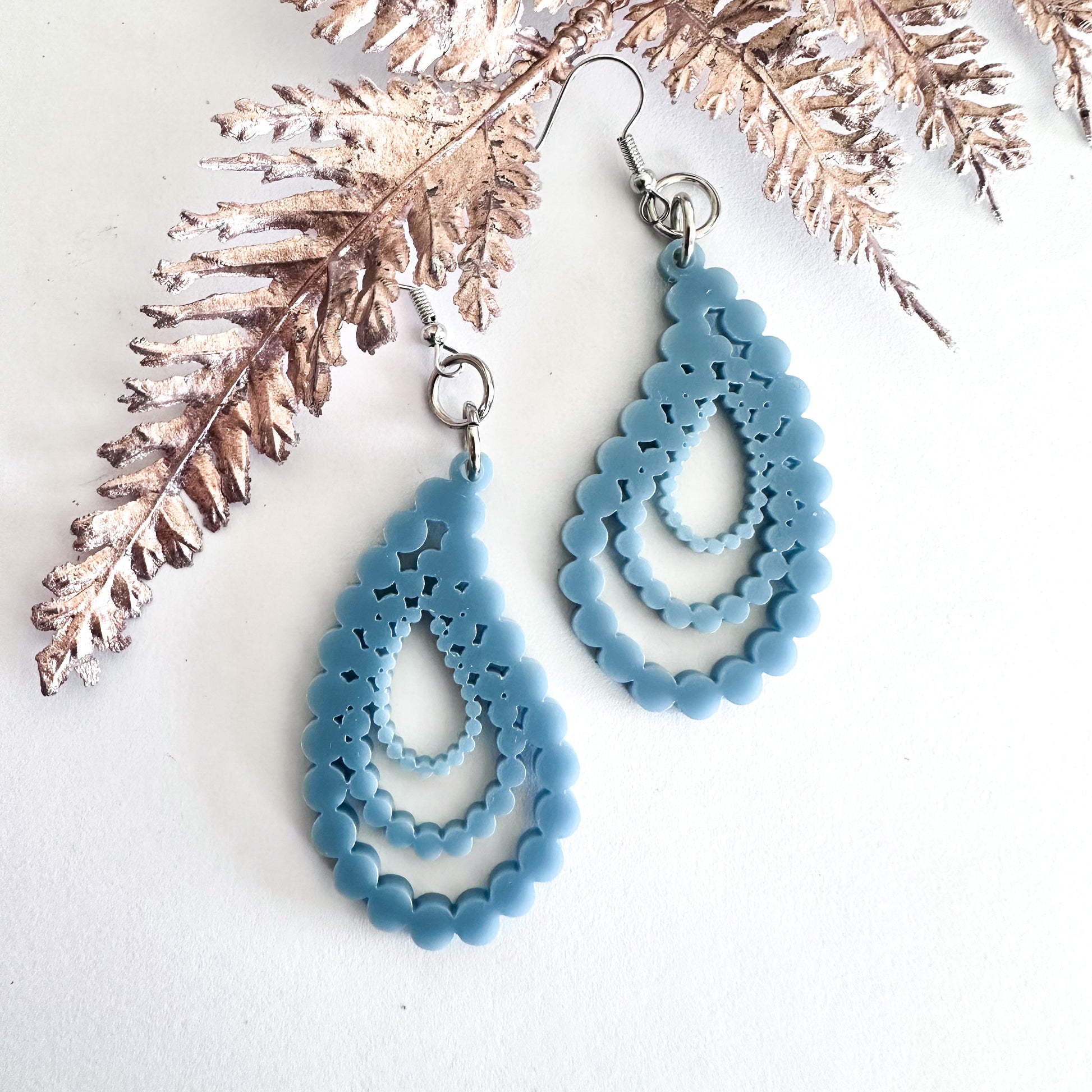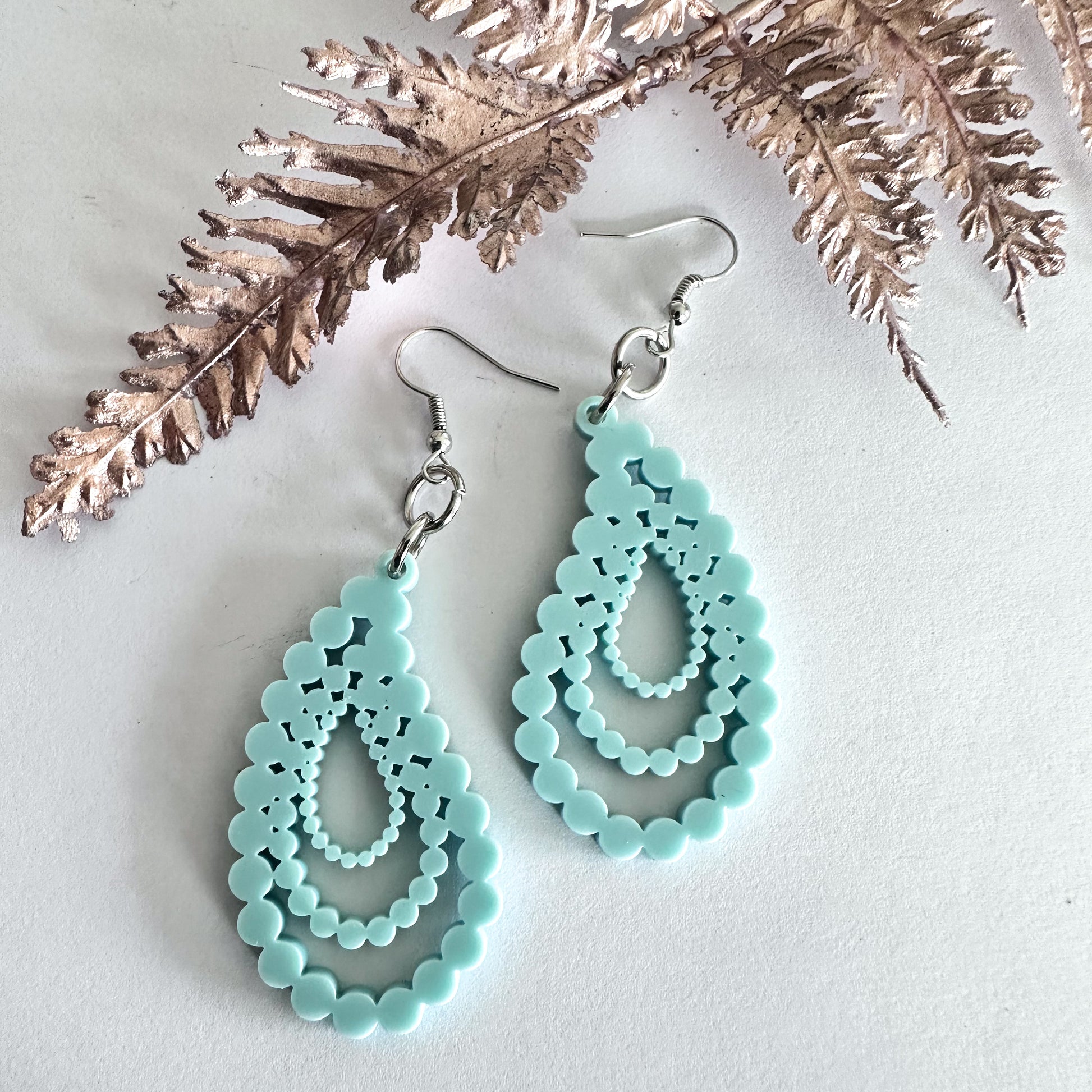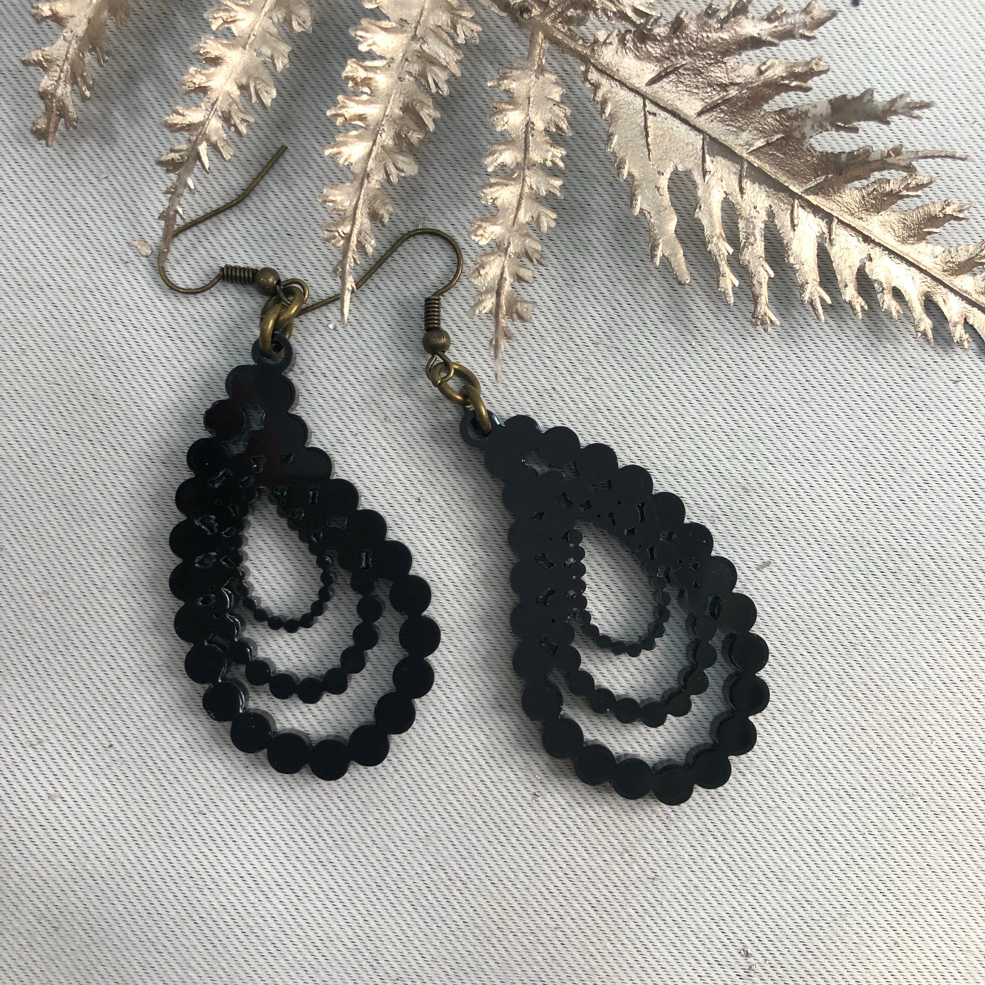 All earrings cut out of perspex making it really light weight and easy to wear.