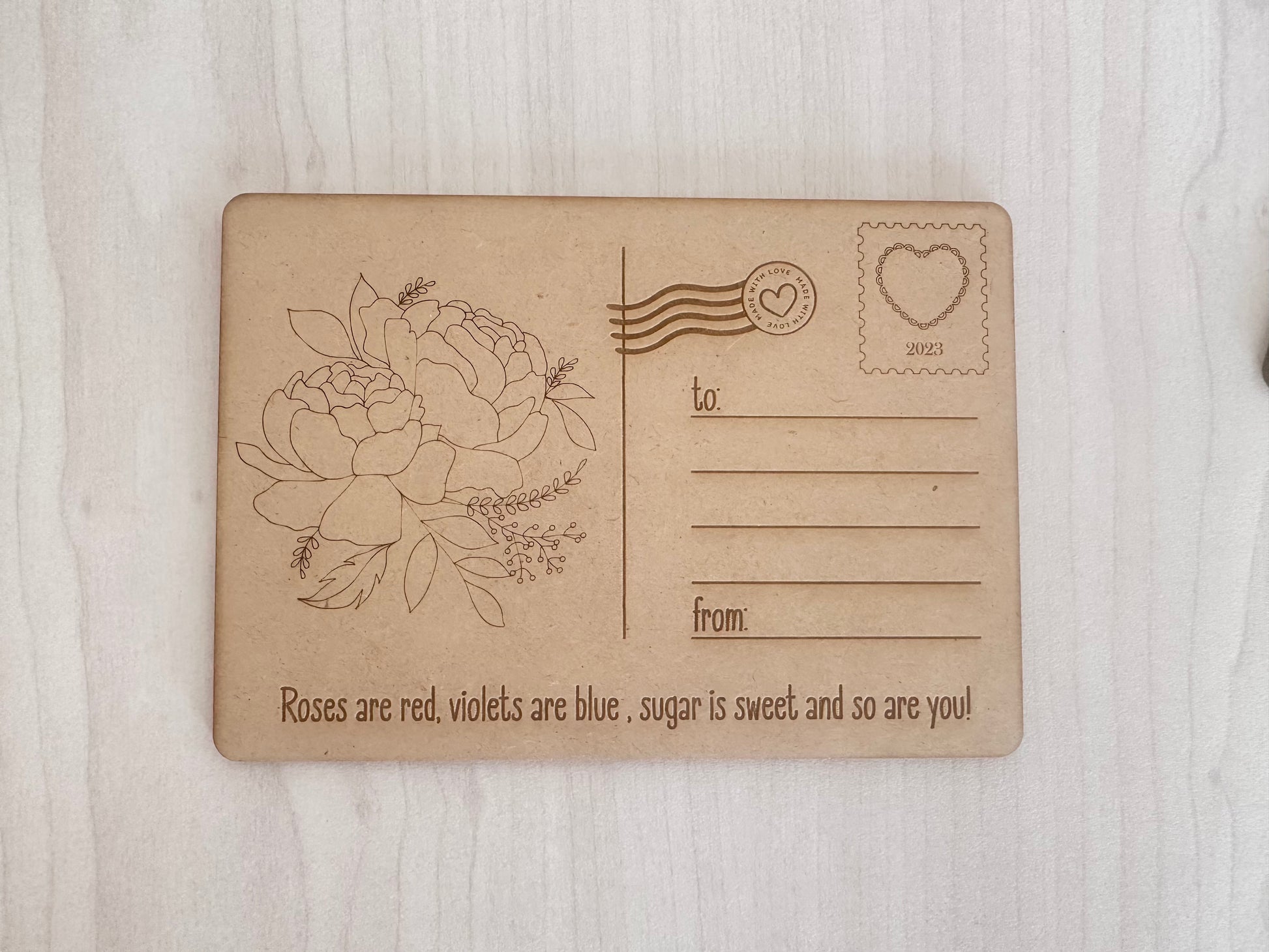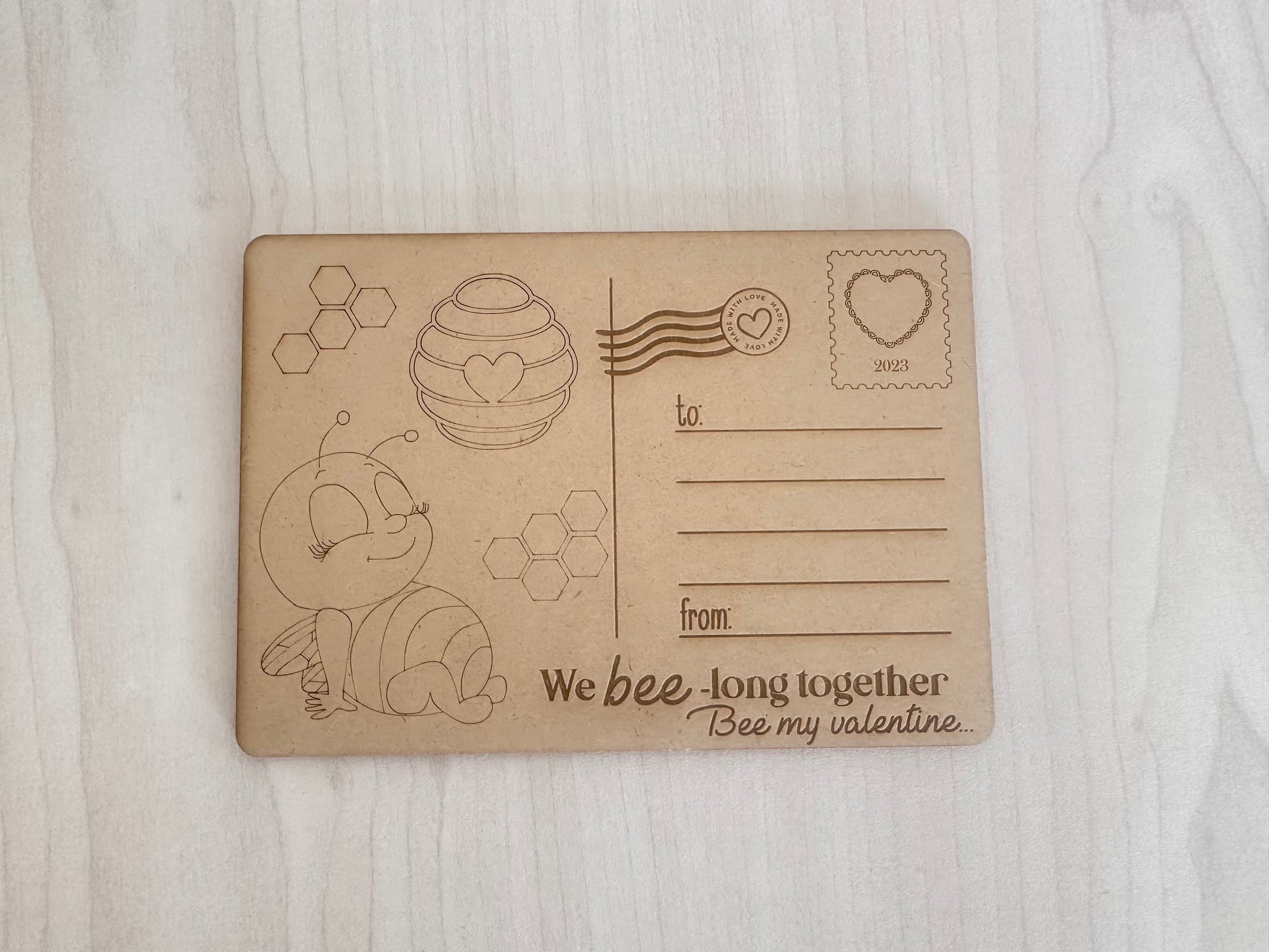 A6 size wooden postcards that can be painted or coloured- in with Koki’s…