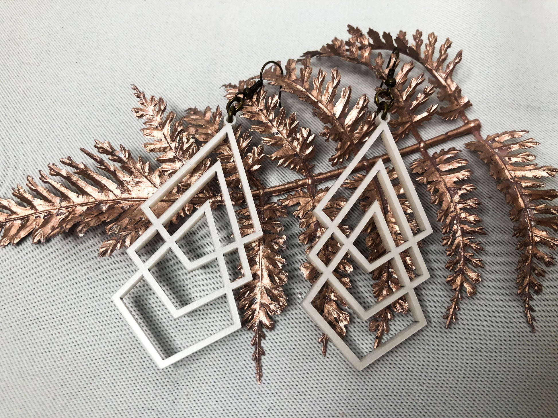 All earrings cut out of perspex making it really light weight and easy to wear.