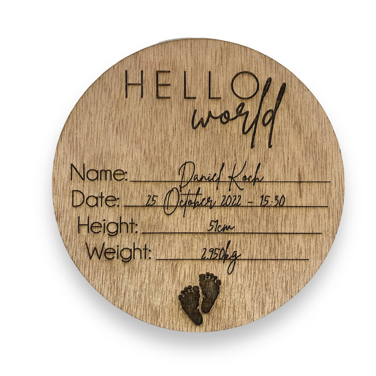 This plain wooden baby announcement sign is perfect for the hospital or after baby has been born to showcase your little one's birth details. you can either order your round blank (with no custom details on it- in this case you can write it on the wood yourself) or you can order your round with all the details engraved on it. (after baby has been born as a memento)