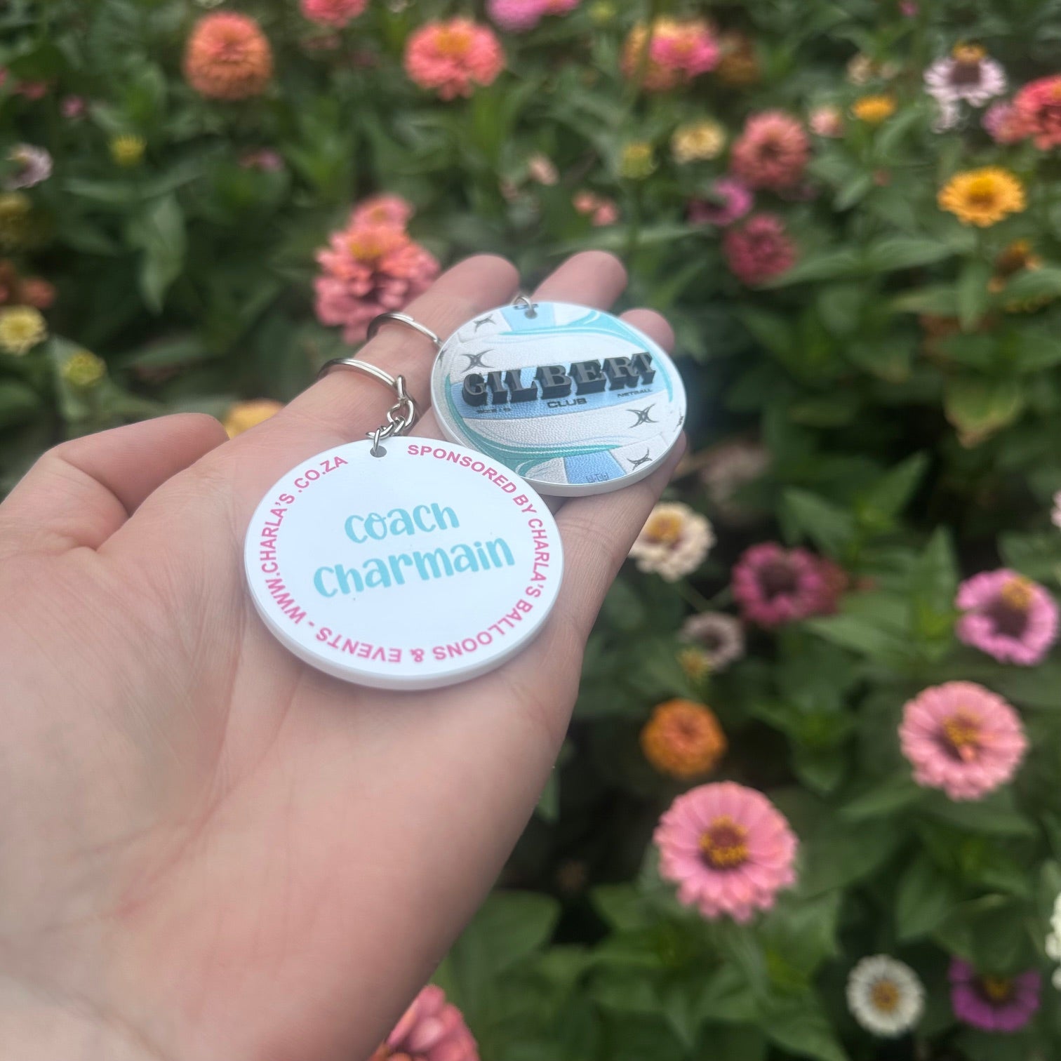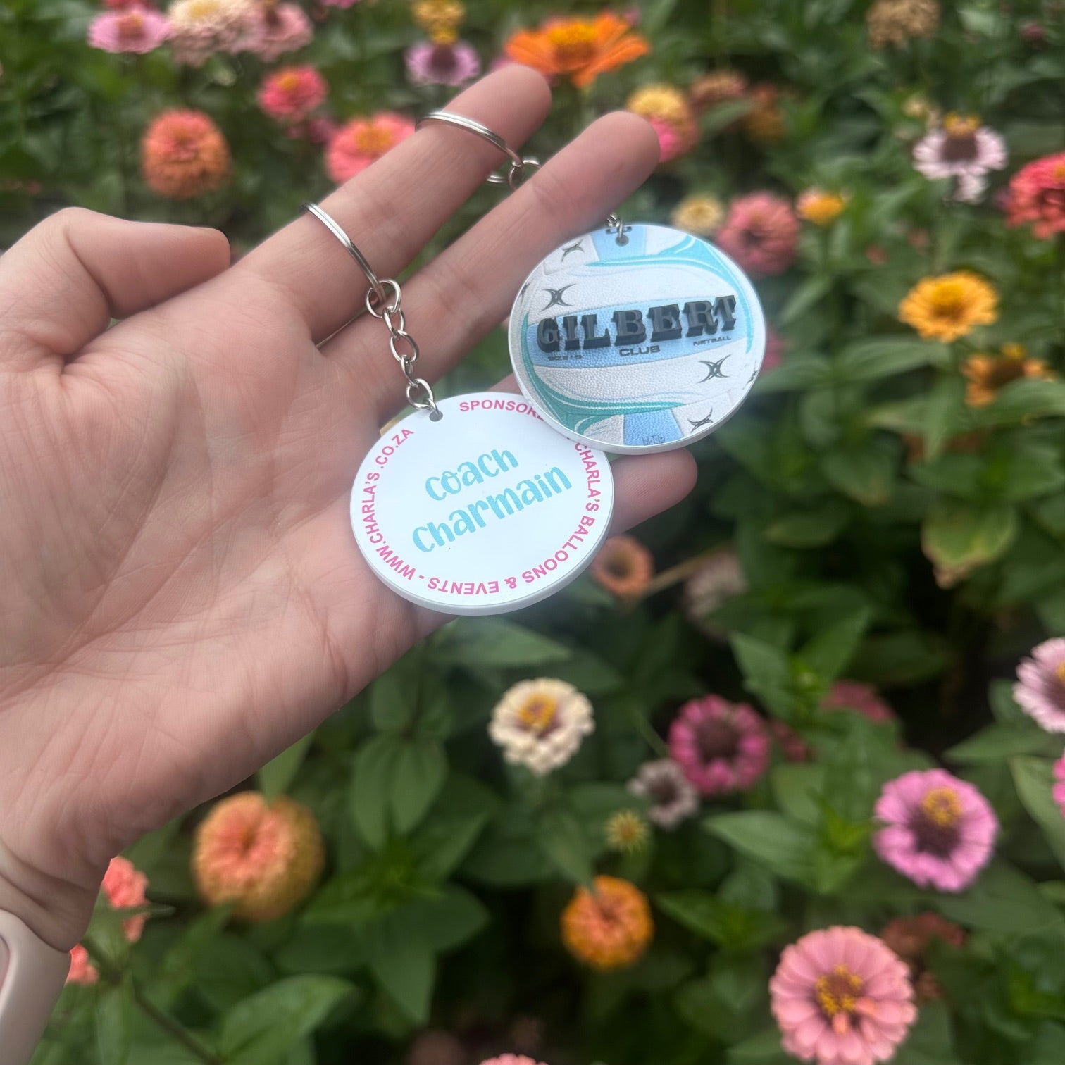 Netball Key Rings - Looking for a fun and stylish way to show your love for netball? Our NETBALL KEY RINGS are the perfect accessory for players, coaches, and fans alike! Whether you're adding them to your keys, bag, or sports kit, these key rings make a great gift for teammates, supporters, and netball lovers of all ages, even as a sponsored item!!