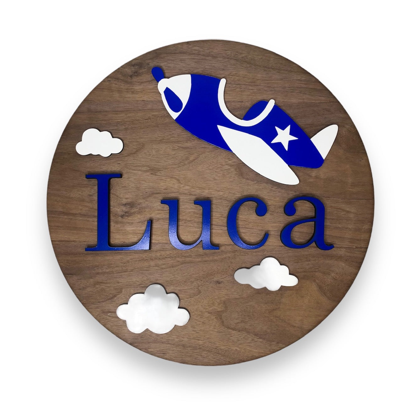 Name board perfect for a plane themed room. can be used as a door sign or wall sign.