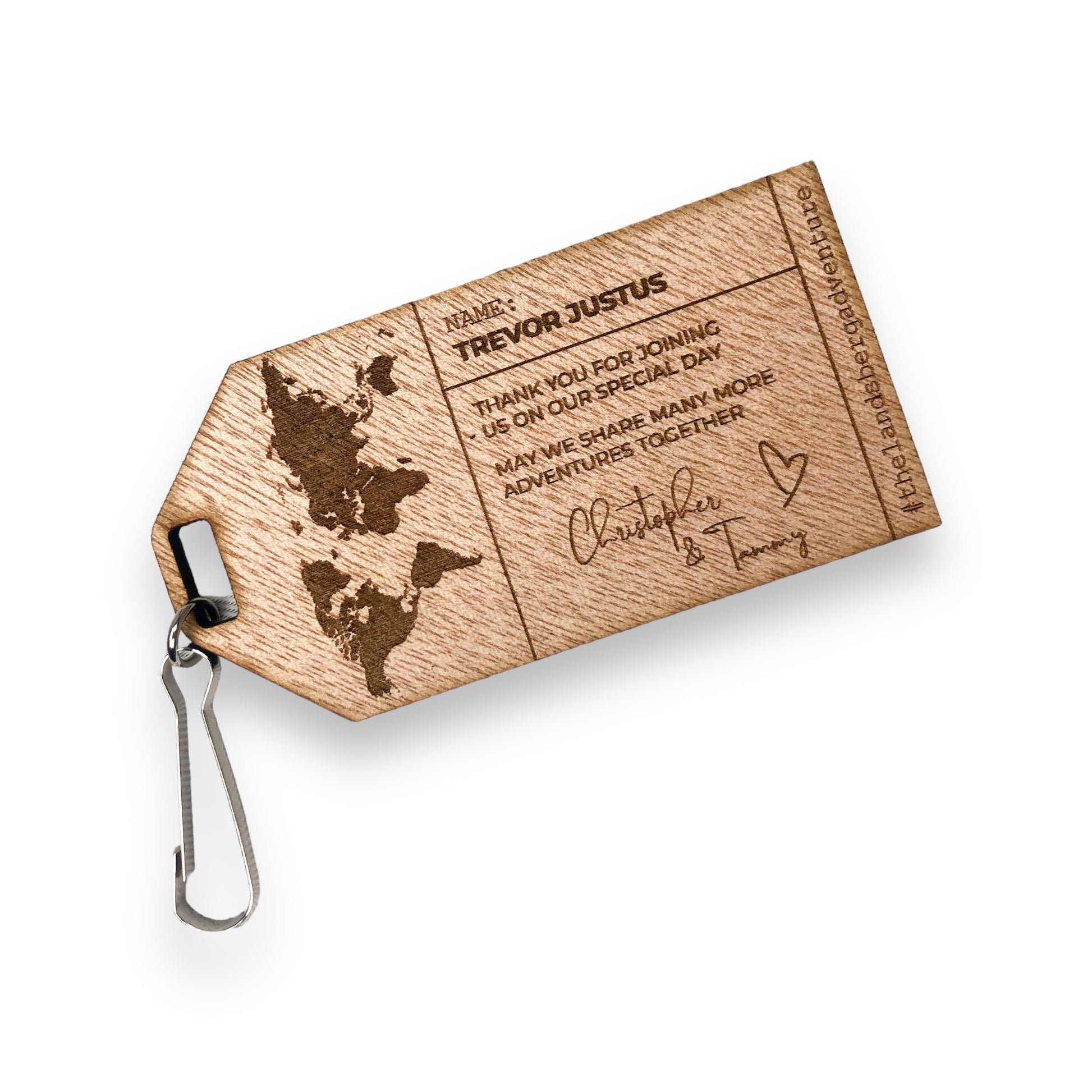Beautiful wooden travel bag tags is the perfect gift or event favor.